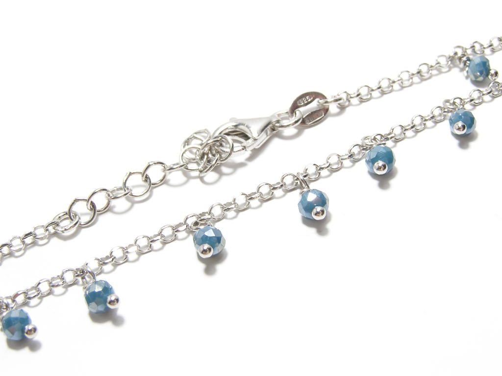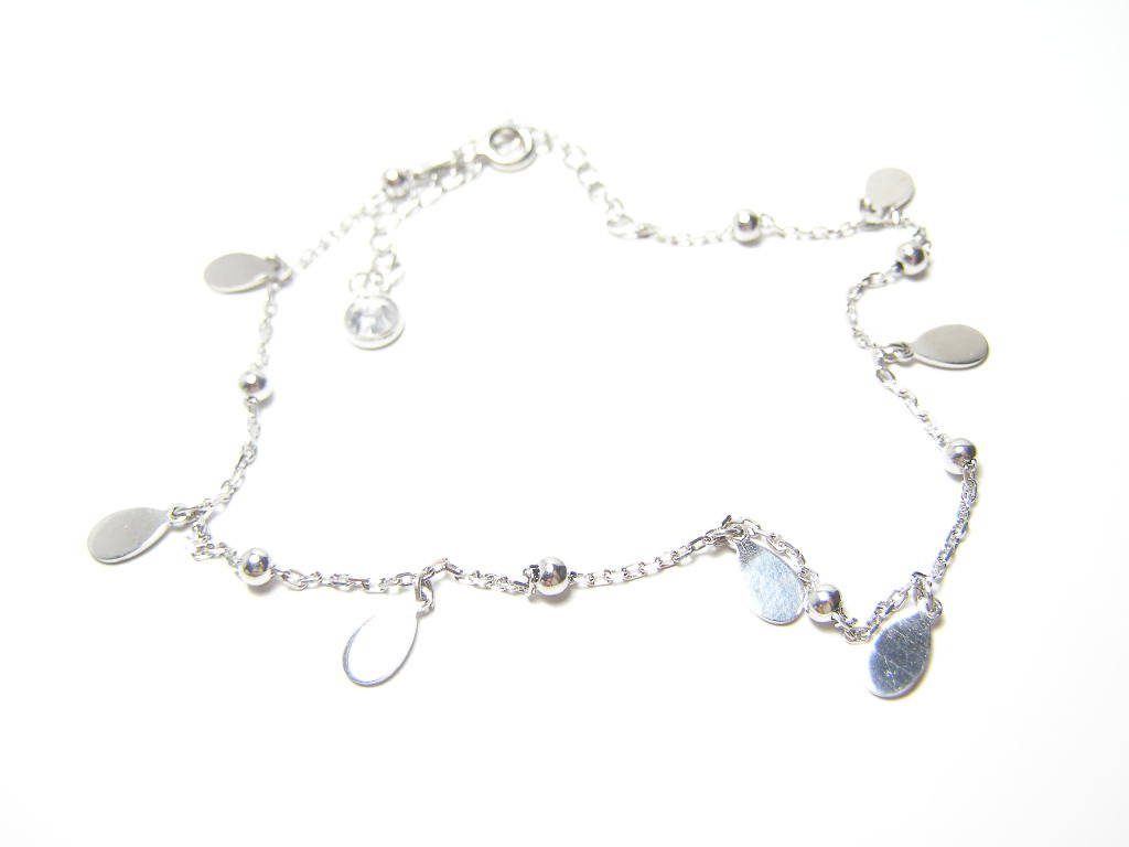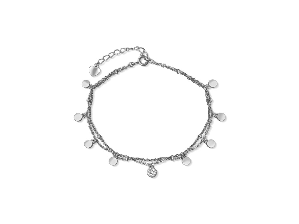 Stříbrný zdvojený řetízek na nohu ozdobený zavěšenými oválky a kuličkami, nastav.délka až 26cm.